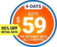 Accommodations will be as specified in the VIP Getaway offer. Certain restrictions may apply. Accommodation upgrades, stays over weekends, high season, peak periods, special events, and holidays are limited and may include additional fees. Savings and accommodations are subject to availability and may vary. Transportation, resort and parking fees, personal expenses, and taxes and other fees are the sole responsibility of the purchaser. Smoking and pets (other than service animals) are not permitted. Parking, where available, is for standard 4-door automobiles only and access for recreational vehicles may be restricted.